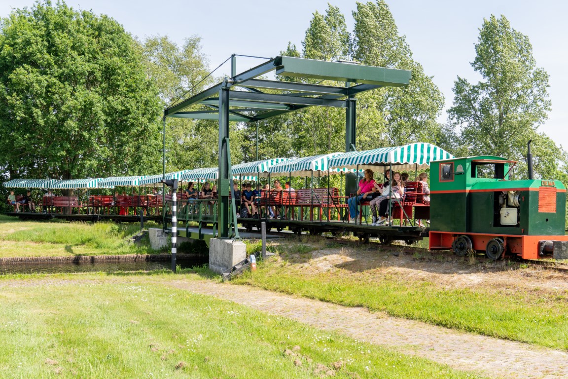 Daarnaast beschikt het Veenpark over een eigen smalspoortrein met twee trajecten en rondvaartboot, die bezoekers meenamen langs historische ambachten en authentieke gebouwen zoals een bakkerij, kruidenier, turfsteker en klompenmaker. Deze karakteristieke vervoersmiddelen zorgden voor een unieke, ontspannen manier om het openluchtmuseum te verkennen.