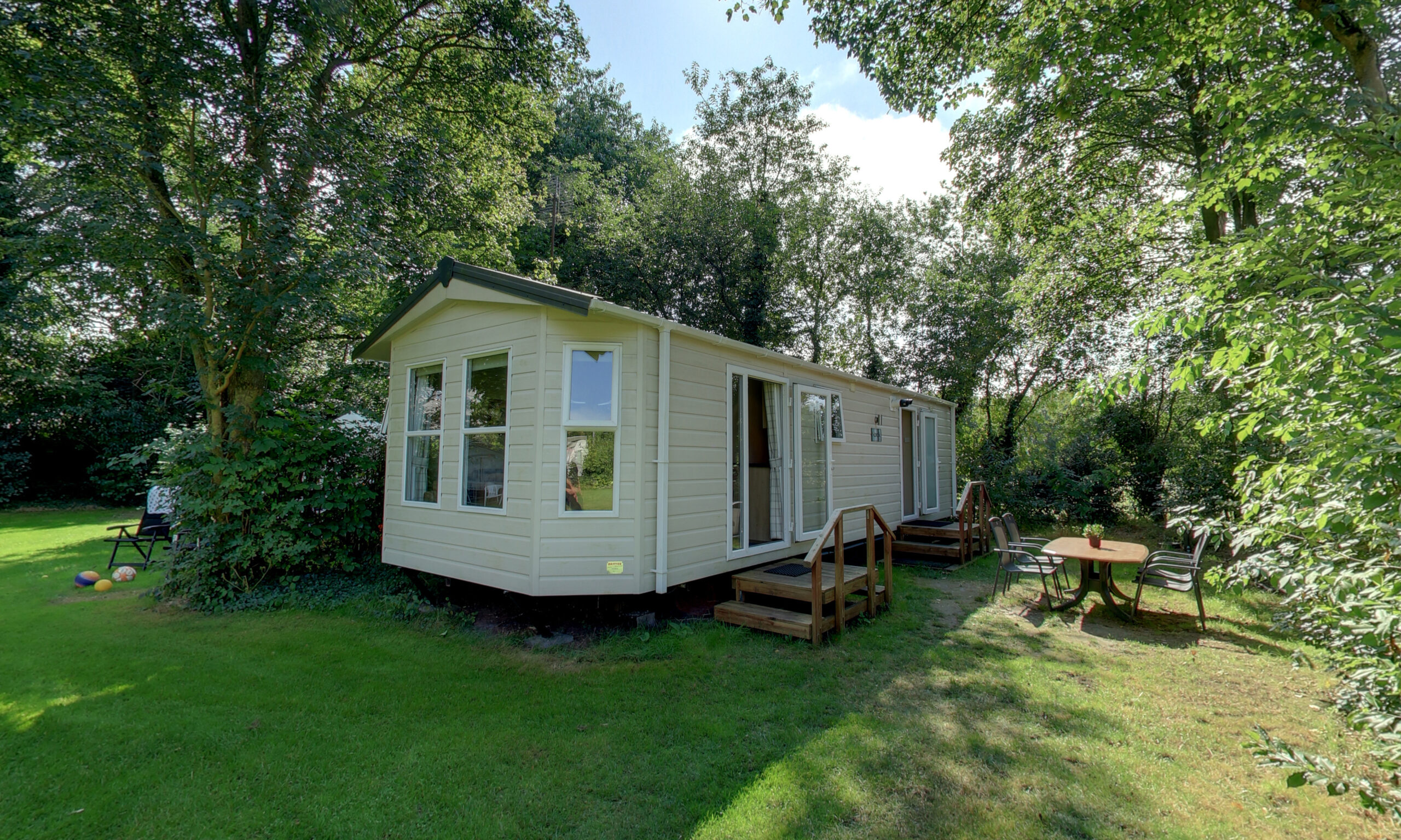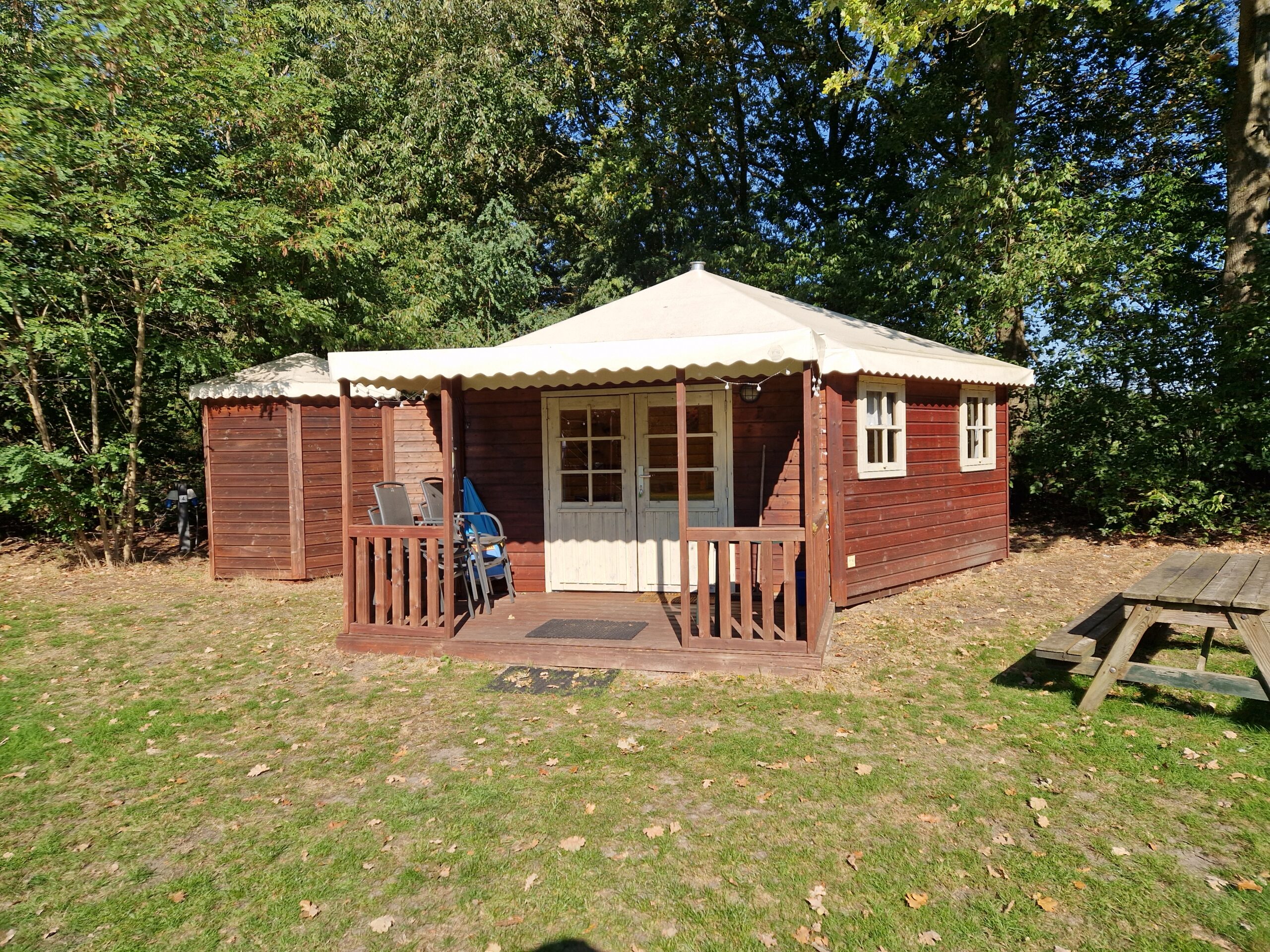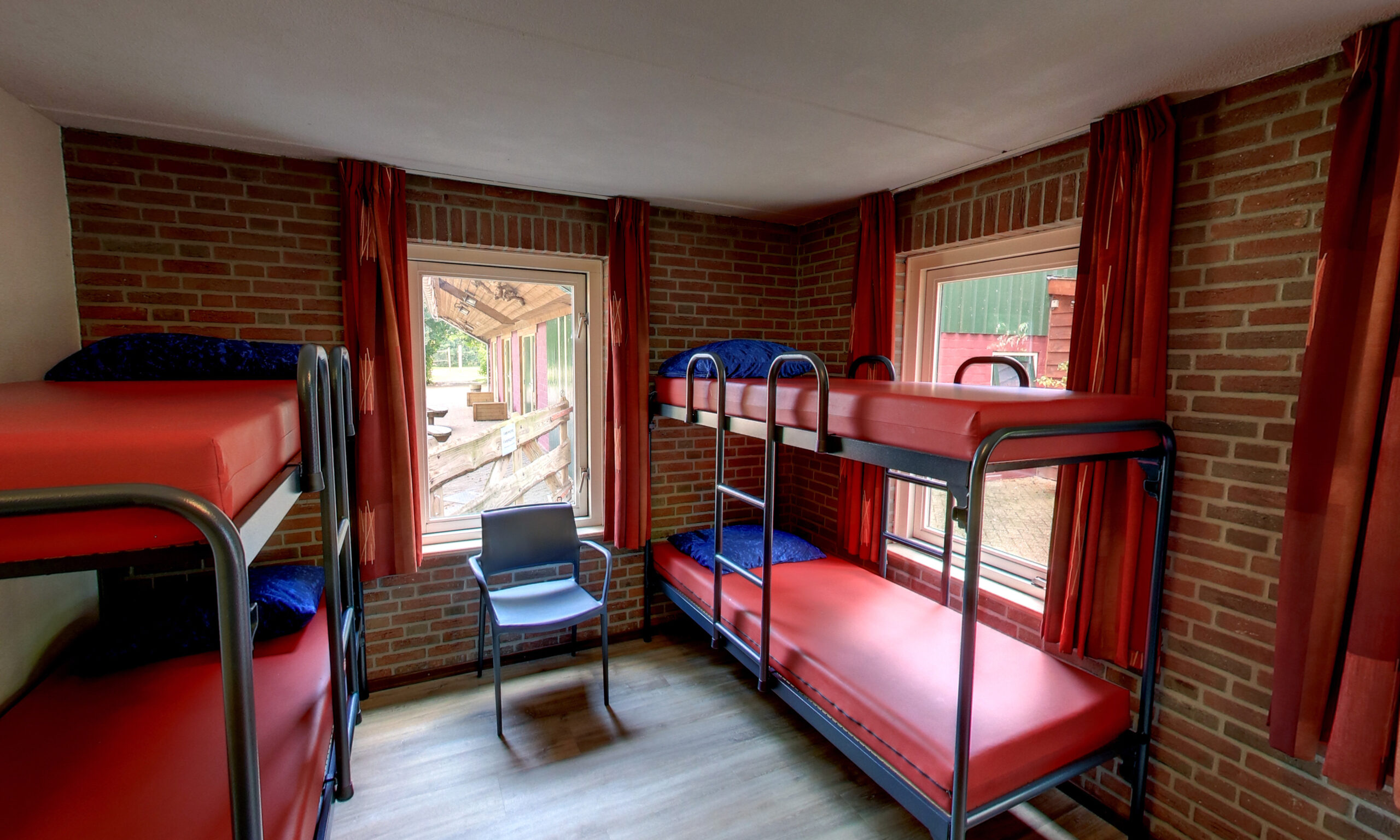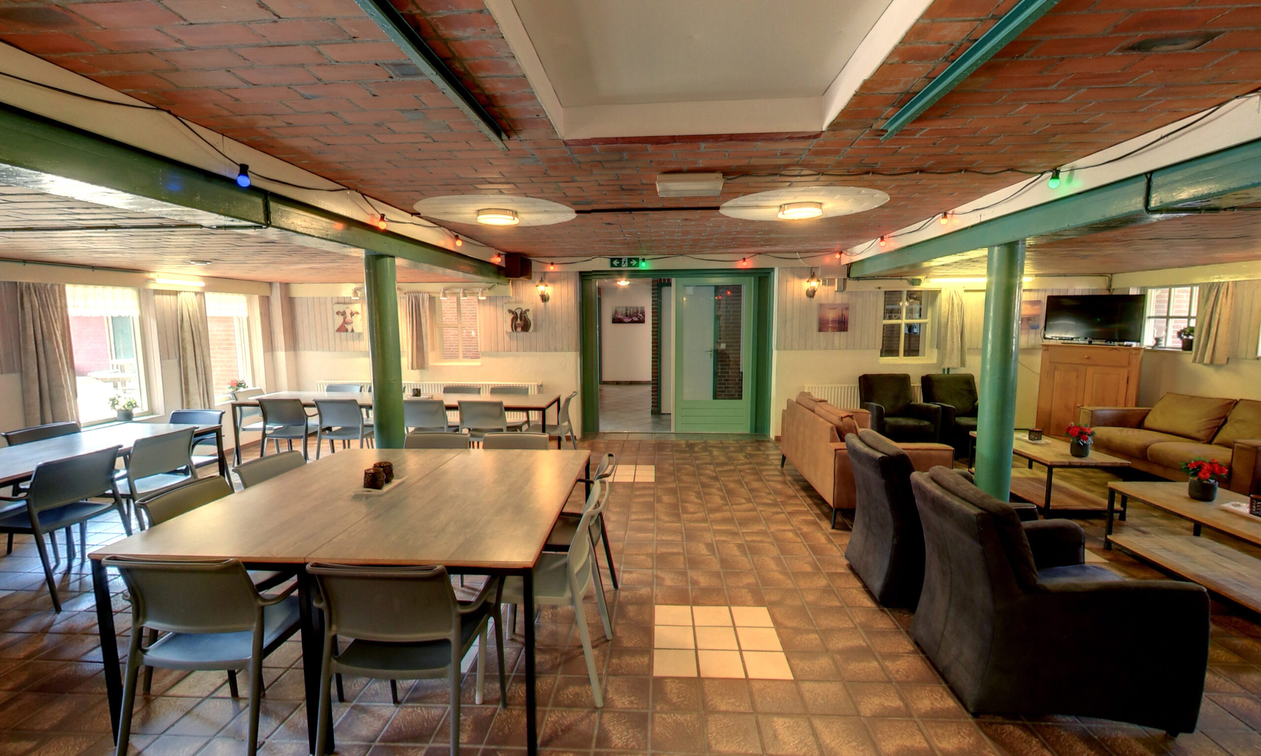 Aan de voorzijde van het terrein is de ruime groepsaccommodatie gevestigd. Deze accommodatie met bouwjaar 1997 is goed onderhouden, onder andere door de in 2020 volledig opnieuw ingerichte zaal. Het pand is aangesloten op CV. Opgetrokken uit steen en voorzien van een pannendak maakt dit twee-laags opgebouwde gebouw dankzij de praktische indeling uitermate geschikt tot het huisvesten van grotere groepen als scholen en verenigingen.