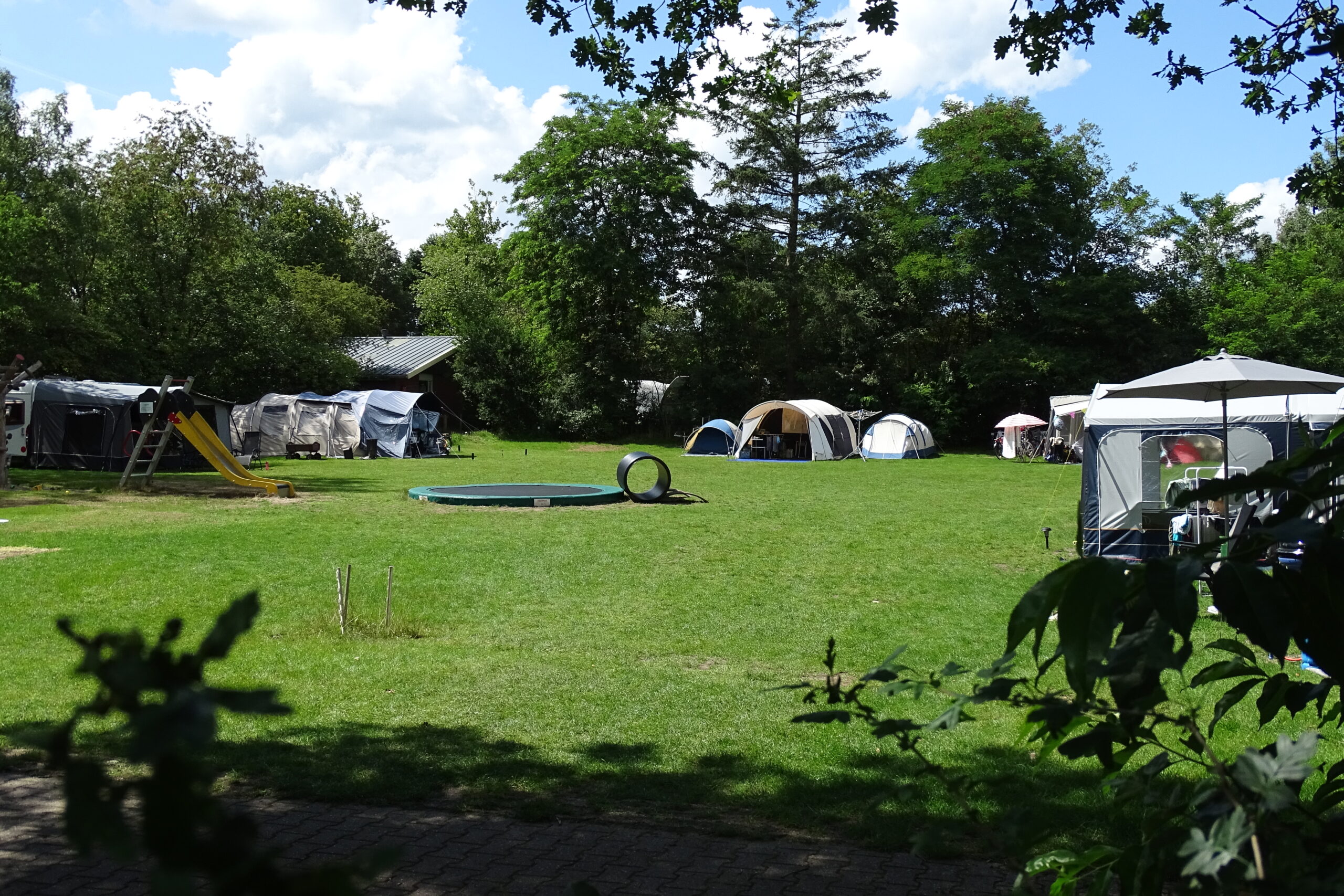 De camping is sfeervol ingedeeld in 6 velden, van elkaar gescheiden doormiddel van een rij bomen, wat zorgt voor privacy en een natuurlijke, bosrijke uitstraling. Het terrein bevat een gevarieerd aanbod aan bedrijfsplekken: 14 jaarplaatsen, onderverdeeld in 12 particuliere chalets en 2 chalets die in eigendom zijn voor de verhuur, evenals 10 seizoenplaatsen en 49 toeristische plaatsen. De ruime plaatsen zijn bijna allemaal voorzien van aansluitingen voor elektra, water, afvoer en wifi netwerk. Voor extra gastenvoorzieningen zijn er, centraal gelegen op het terrein, 2 moderne en verwarmde sanitair gebouwen aanwezig.