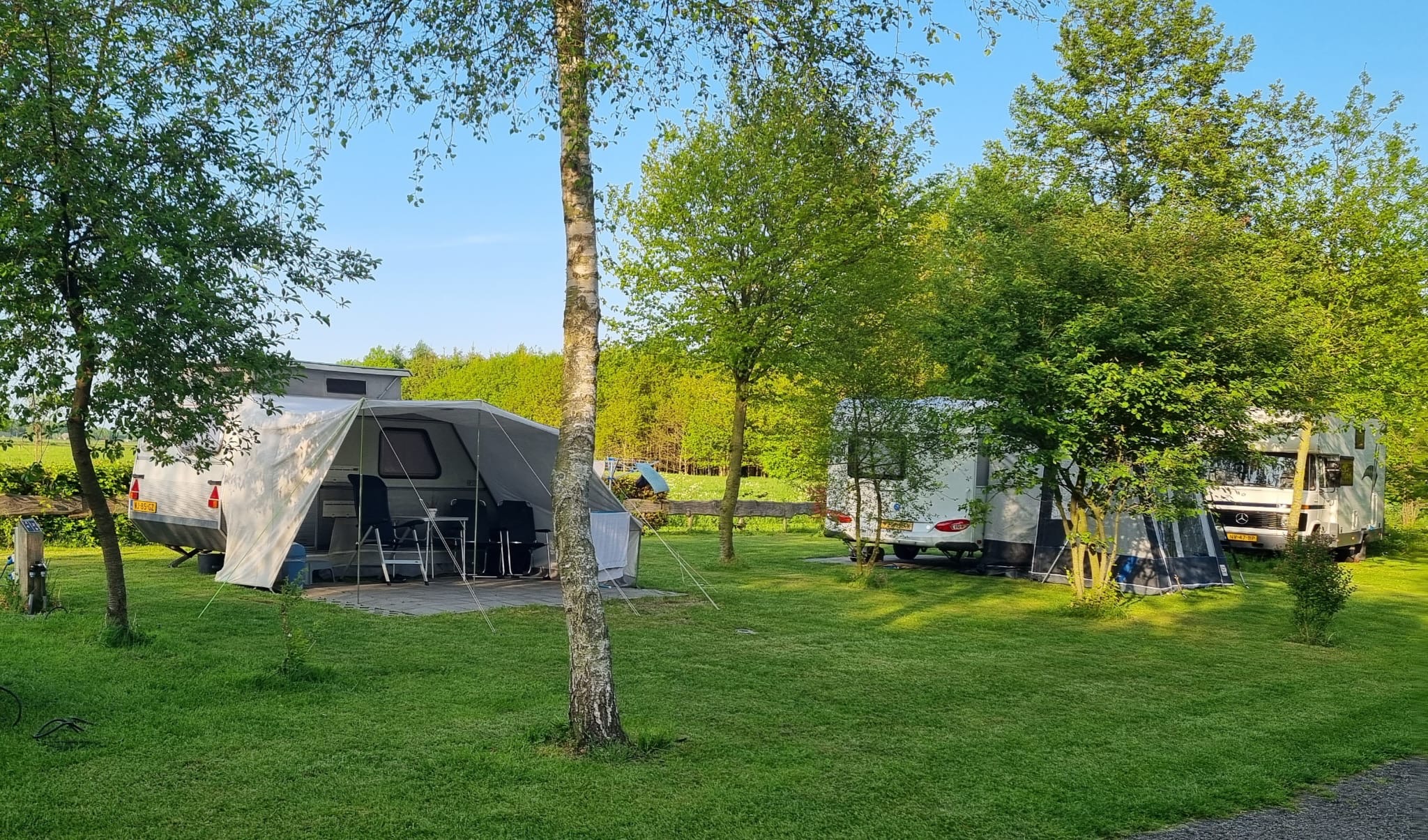 De camping beschikt over 34 toeristische plaatsen. Het terrein is keurig onderhouden en voorzien van een instapklaar sanitairgebouw, een blokhut, een parkeerterrein, deze is onder andere geschikt voor het plaatsen van campers. Daarnaast beschikt het aangebodene over een eigen bos van ruim 4 hectare direct grenzend aan het Mantingerzand.